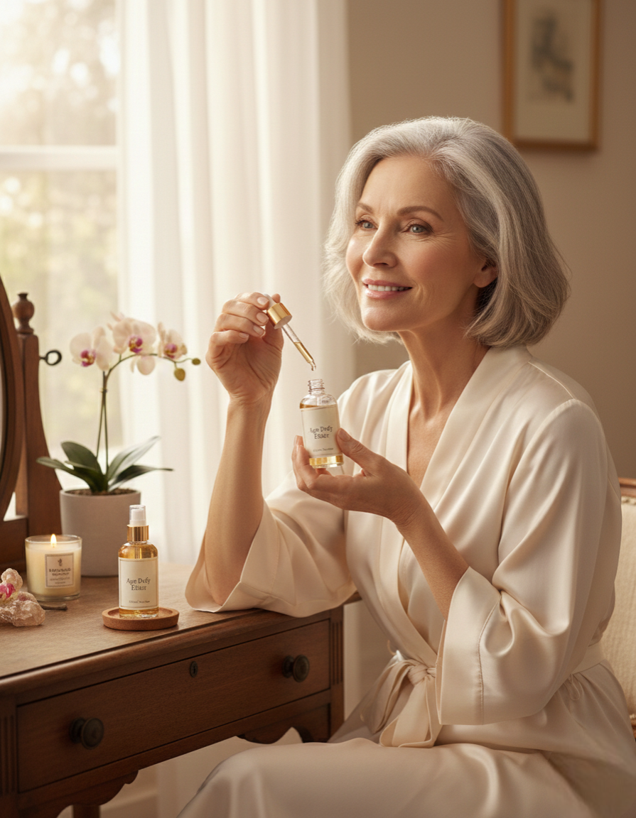 True ageless beauty begins with a mindful routine. Pairing Age Defy Elixir with nourishing skincare, restful sleep, proper hydration, and healthy movement helps support visibly smoother, firmer, and more luminous skin—so you can face every day with confidence and calm clarity.